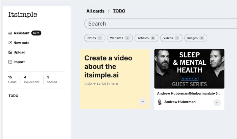 ItsimpleAI is designed to help you capture, organize, and share your thoughts, interests, and just about anything else you like.